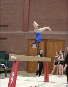Ambitions for the future: With her grades now completed, Chloe is ambitiously working towards the FIG program, aspiring to compete in the prestigious British Championships. Her immediate focus is on preparing for The Jim Moss English Championships, setting challenging goals to achieve by June. Chloe’s next targets include perfecting the flic-flic on the competition beam and executing a 1 1/2 back twist into a front tuck on the floor. Her dedication and drive continue to propel her towards new heights in her gymnastics career.